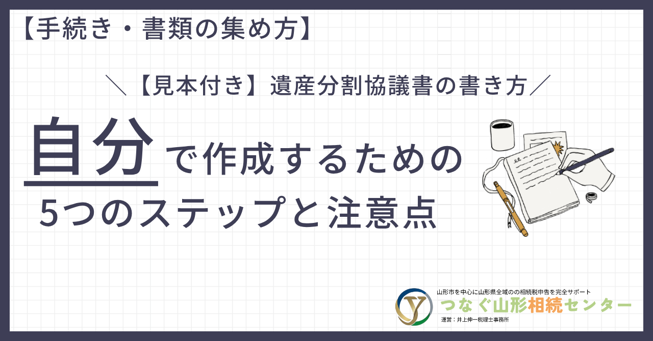 この記事では、自分で遺産分割協議書を作成するための5つのステップと、失敗しないための注意点を、そのまま使える見本(ひな形)と共にご紹介いたします。