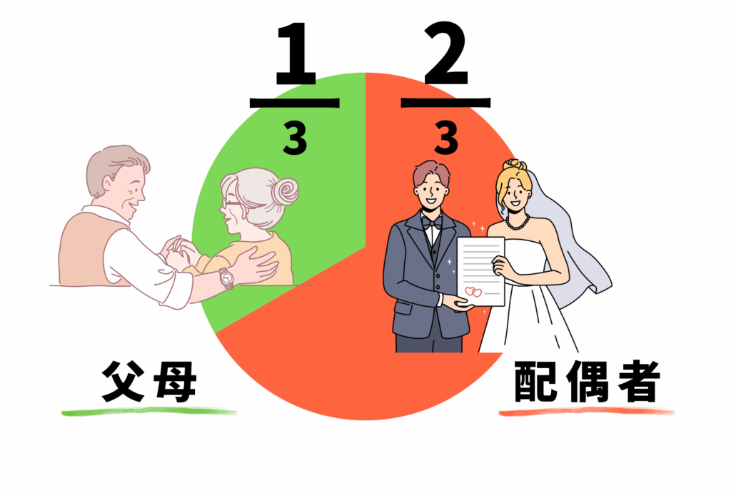 ケース②:相続人が「配偶者」と「親」の場合(子や孫はいない)