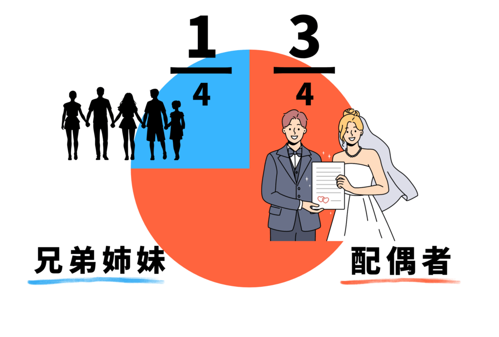※兄弟姉妹が複数いる場合は、1/4をさらに人数で均等に分けます。