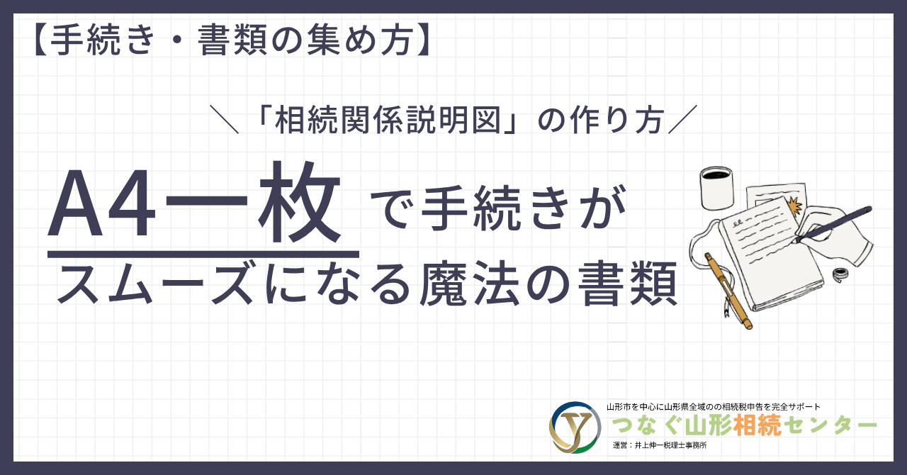 私たち「つなぐ山形相続センター」では、この最も時間と手間のかかる戸籍収集から、正確な相続関係説明図の作成、そしてその後の金融機関や法務局での手続きまでを、一括して代行させていただくことが可能です。