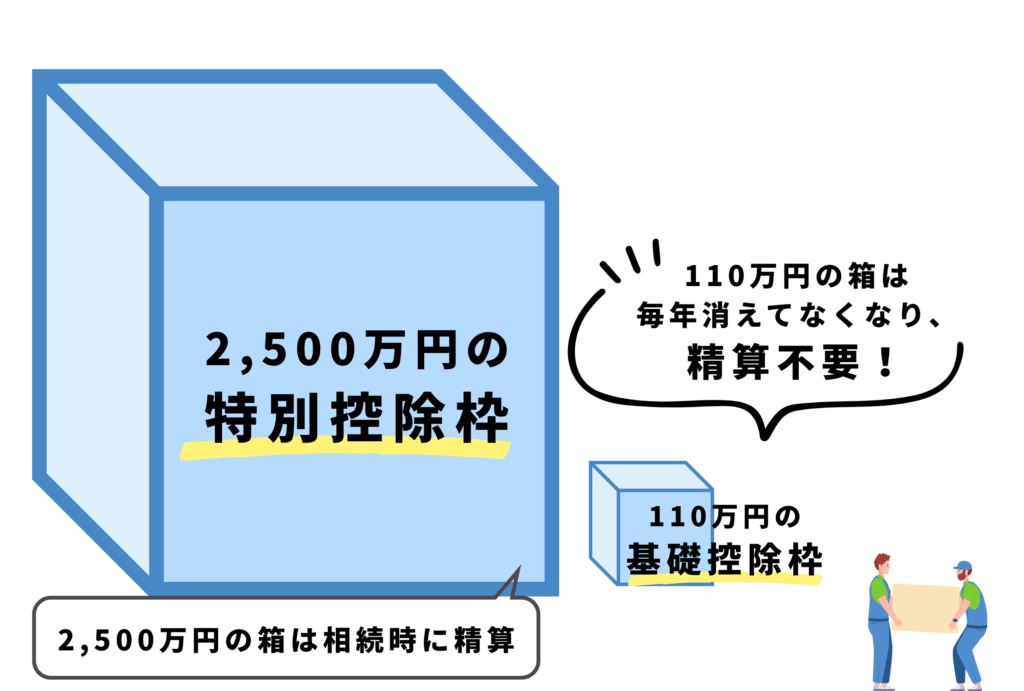 - 生涯で2,500万円までの特別控除枠(相続時に精算)