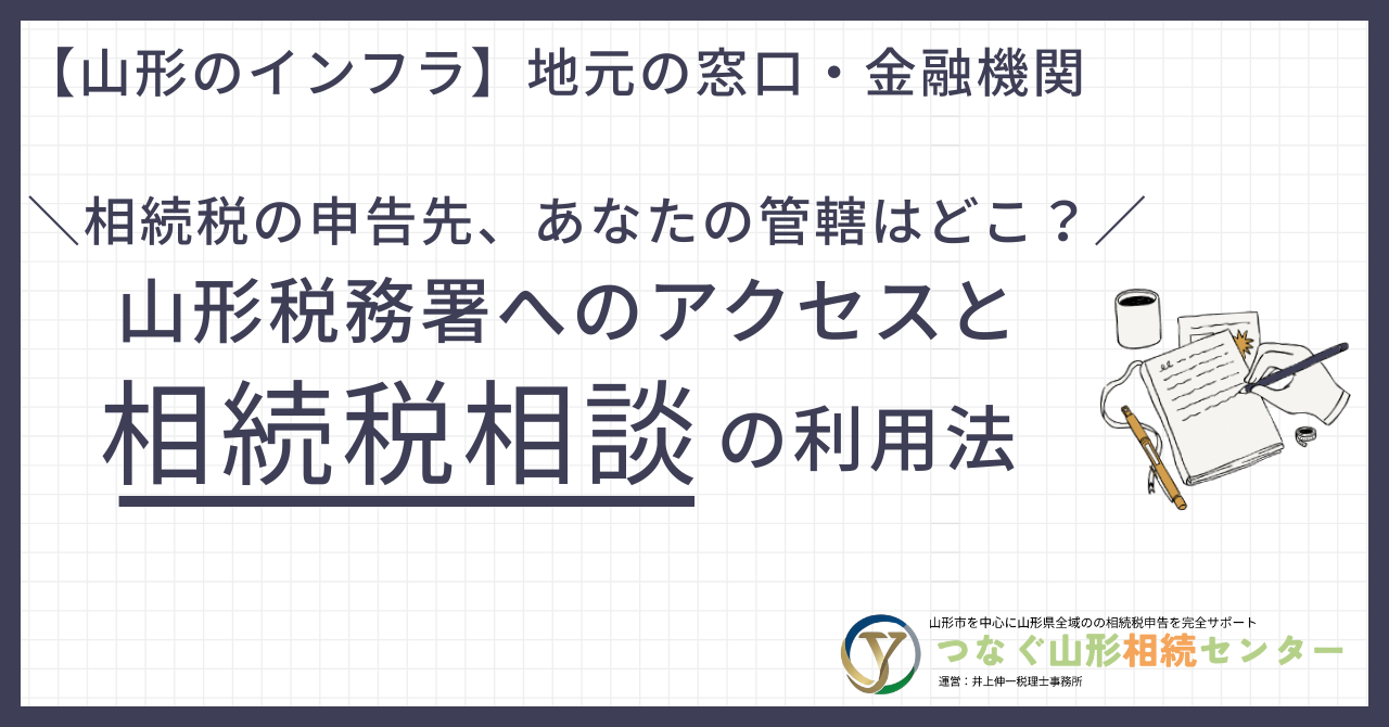 相続税の申告は、お亡くなりになった方の「最後の住所地」を管轄する税務署に行う必要があります。山形市周辺にお住まいの場合、主に「山形税務署」がその窓口となります。