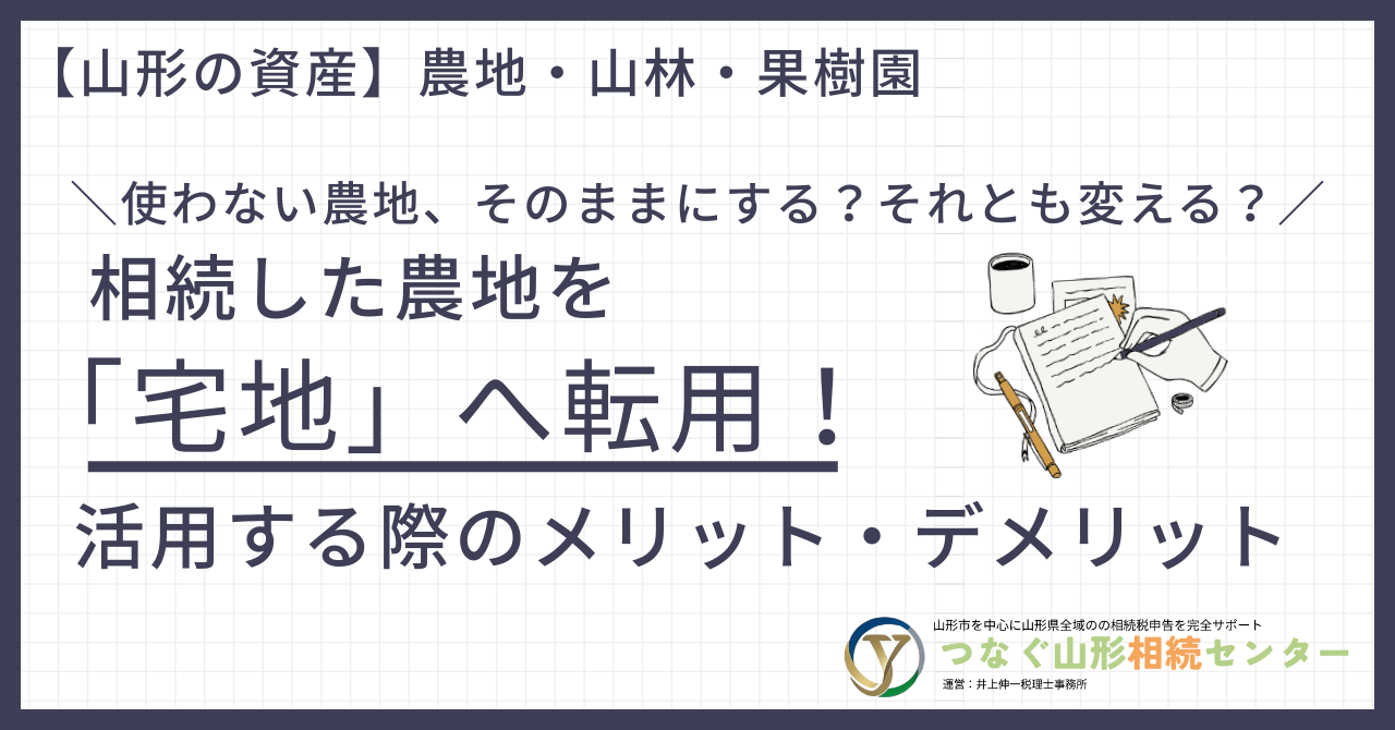 山形県内、特に山形市や天童市などの都市部周辺では、相続した農地の「使い道」に悩む方が増えています。農地を住宅用の土地(宅地)に変えることを「農地転用(のうちてんよう)」と言いますが、これには大きなメリットがある一方で、慎重に検討すべきデメリットも存在します。